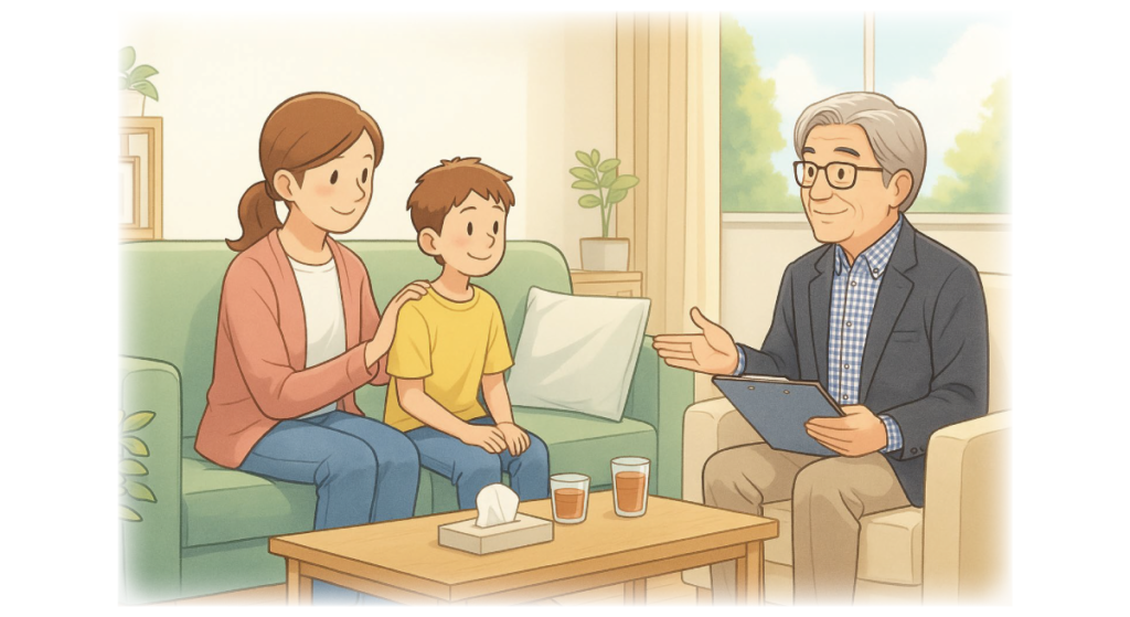 ホーム QOLグループ本社の隣に、安心して相談できる場所ができました。 QOLグループ本社の隣に、安心して相談できる場所ができました。 一人で悩まなくても大丈夫。 臨床心理士がゆっくりお話を伺います。 うまく言葉にできない気持ちが心の中で立ち止まっていませんか?”わかってほしい”その気持ちを静かに受け止める場所があります。今の気持ちのままでここに来てください。心の整理は一人でしなくていいのです。 こんなお悩みありませんか? 気持ちのコントロールが難しく、不安やイライラが強い。学校・職場・家庭での人間関係に悩んでいる。自分の障がい特性とうまく付き合うことができず、生きづらさを感じる。将来への不安や、自己肯定感の低さに悩んでいる。保護者として、子どもへの関わり方に悩んでいる。 カウンセラー紹介 臨床心理士水口 進 一人で悩まなくても大丈夫。臨床心理士がゆっくりお話を伺います。 まわりと同じようにできなくて心が疲れてしまったとき、理由はわからないけれど胸がざわざわするとき、その気持ちは間違いでも弱さでもありません。あなたの心が出している”サイン”なのです。専門家と一緒にそのサインの意味を紐解いてみませんか? カウンセリング内容 個別カウンセリング心理的サポート感情整理自己理解・障がい特性の理解支援保護者様・ご家族様への相談支援診断や意見書の発行日常生活・学校・就労に関する心理面のサポート 場所・時間について QOL水戸本社 隣接茨城県水戸市赤塚1-2067-3 コーキビル 2F 208号室平日:9:00~17:00 / 土曜:9:00~16:00 【1枠50分(事前予約制)】 料金・予約方法について 1回(50分):5,000円(税込)※当日、現金払いご予約は Google フォームにて受付をしています。 ※事前ご予約制となります。 QOLグループ本社の隣に、安心して相談できる場所ができました。 QOLグループ本社の隣に、安心して相談できる場所ができました。 「この関わり方で合っているかな?」 「誰に相談したらいいのかわからない・・・」 子育ての中で、そんな不安を感じることは決して特別なことではありません。 QOLカウンセリングルームは、 臨床心理士が保護者の方のお話に丁寧に耳を傾ける場所です。 診断や意見書は「その子らしさ」を理解しご家庭や学校、支援の場で無理なく関われるヒントを一緒に見つけていくためのものだと私たちは考えています。 診断や意見書は、お子さまを枠にはめるためのものではありません。 診断や意見書を通して、お子さまの特性を理解し、その子らしく過ごすためのヒントを一緒に考えていきます。 QOLグループはこれまで 多くの子どもたちと、ご家族と向き合ってきました。 だからこそ保護者の方が一人で悩みを抱え込まないことを大切にしています。 だからこそ 保護者の方が一人で悩みを抱え込まないことを大切にしています。 ここでは、答えを急ぐ必要はありません。今感じていることを、そのまま話していただいて構いません。QOLカウンセリングルームは、保護者の方が少し肩の力を抜き、「相談してよかった」と感じられる場所でありたいと願っています。 ※事前ご予約制となります。